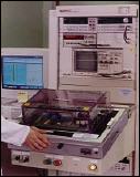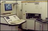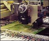 Nach dem Laminieren werden die Fertigungszuschnitte mit den entsprechenden Leiterbildfilmen belichtet. Das Leiterplattencentrum setzt je nach Bedarf halbautomatische oder ein vollautomatisches Roboterbelichtungssystem mit dem LPC-CCD-Kamera- Positionierungssystem ein. |